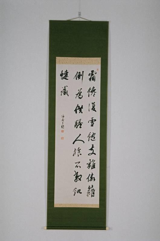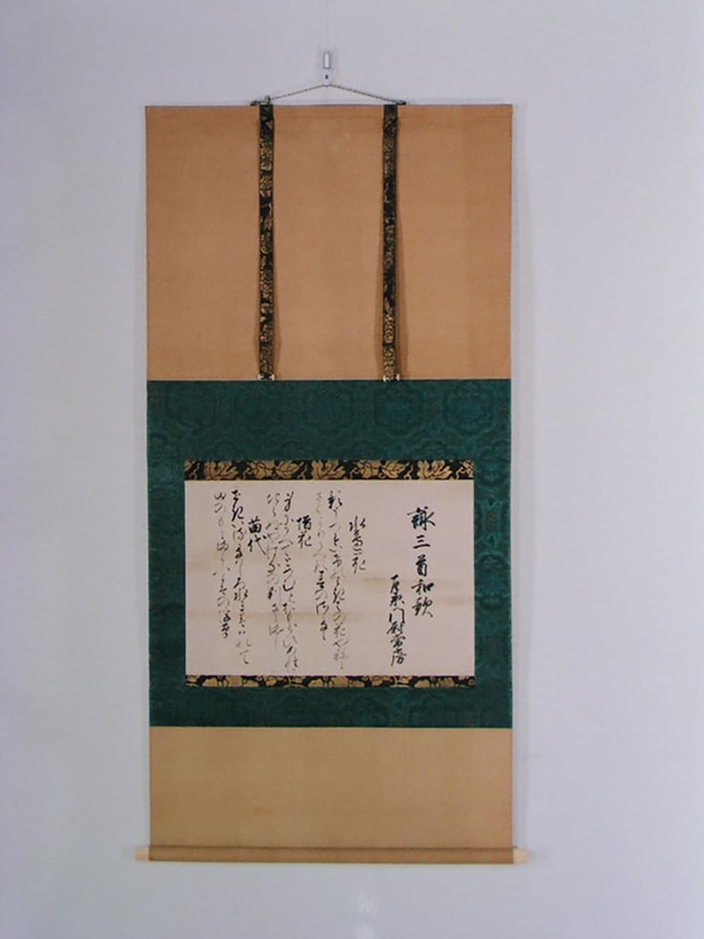 書は、飯尾常房懐紙、前田玄以、千利休・小堀遠州の消息文・茶伝をはじめ、阿波藩儒官の新居水竹・柴秋邨・岡本韋庵、幕末三筆の貫名菘蓊・市河米庵、巻菱湖、日展参事の小坂奇石、当寺本山仁和寺門跡の染筆、梅舒適など50余点。