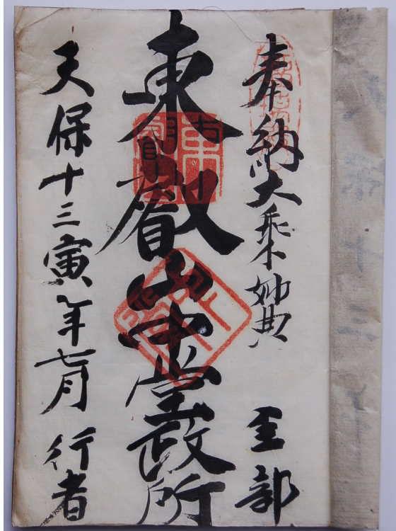 御室御所伽藍(写真左)は京都の仁和寺であり、東叡山(写真右)は江戸の寛永寺で、天保13(1842)年の納経である。