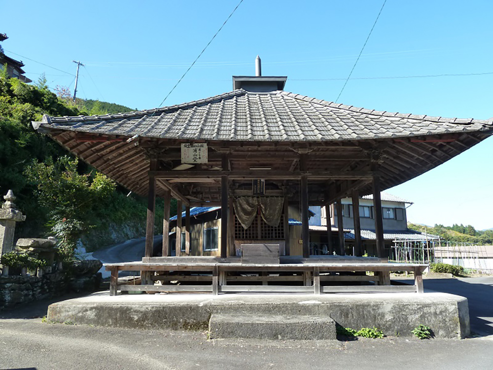 徳島県の山間地域には、約600余のお堂があり、特に剣山の北面地域の集落には、5~6m四方の宝形造で、三方に戸が無い「三方吹き抜け」の大きなお堂が多くある。