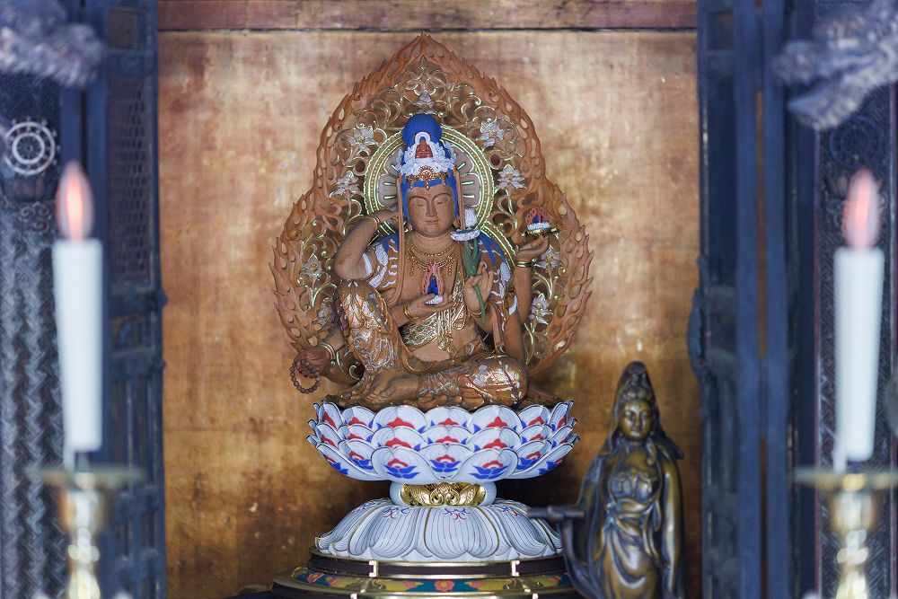 本尊 不動明王 脇侍 地蔵菩薩・弘法大師下段に大黒天と愛染明王をまつる。